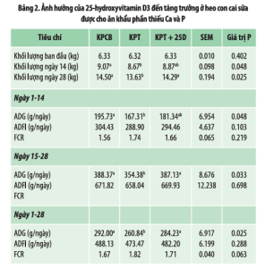 - Ảnh hưởng của 25-Hydroxyvitamin D3 (Hao D) lên tăng trưởng và các thông số sinh hóa của xương ở heo con cai sữa được cho ăn khẩu phần thiếu canxi và phốt pho