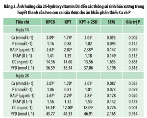 - Ảnh hưởng của 25-Hydroxyvitamin D3 (Hao D) lên tăng trưởng và các thông số sinh hóa của xương ở heo con cai sữa được cho ăn khẩu phần thiếu canxi và phốt pho