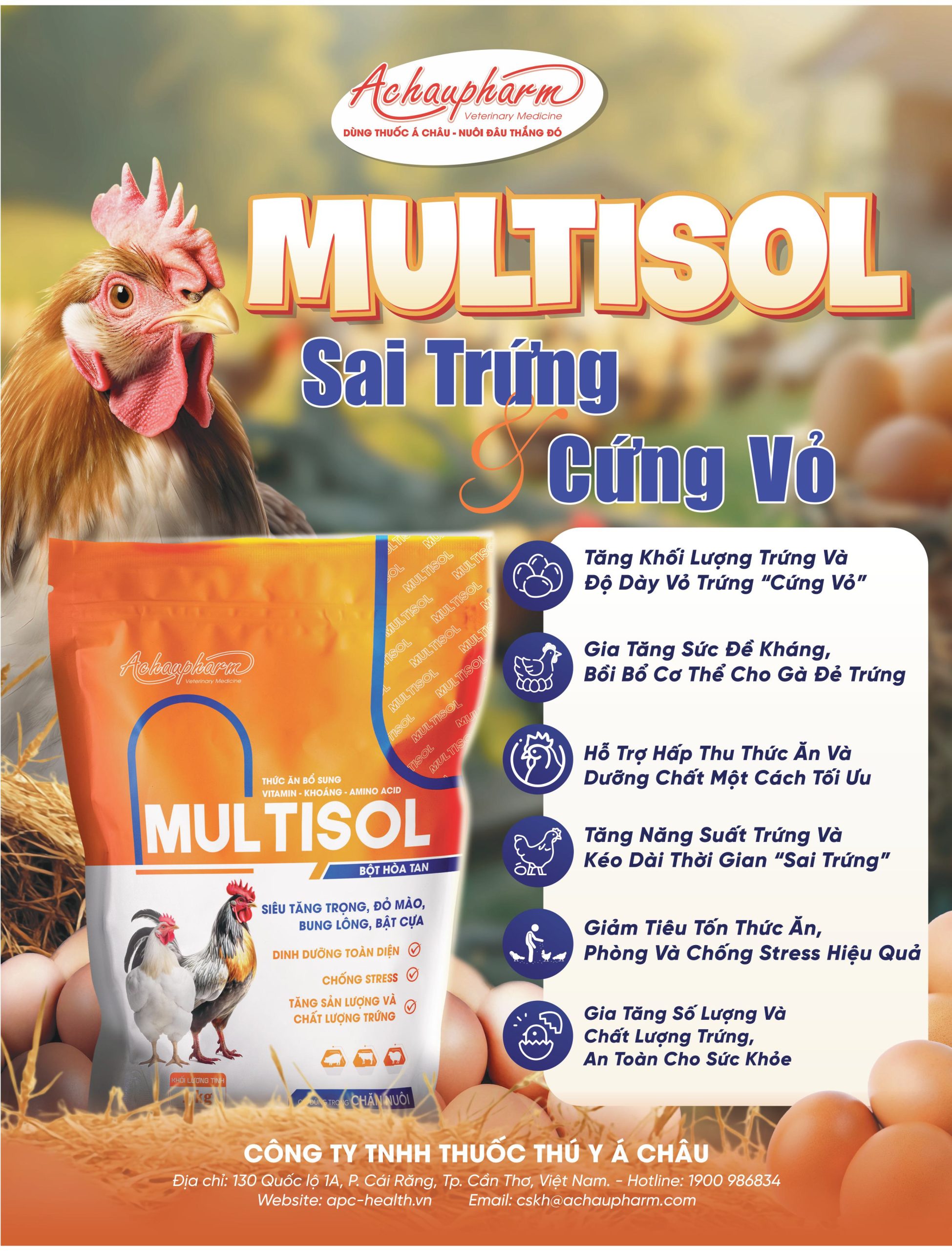 Achaupharm: MULTISOL Sai trứng, cứng vỏ