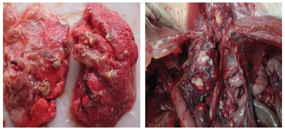 Phổi gà có nhiều nốt sần do u hạt; Viêm túi khí do nấm dạng u hạt lan tỏa