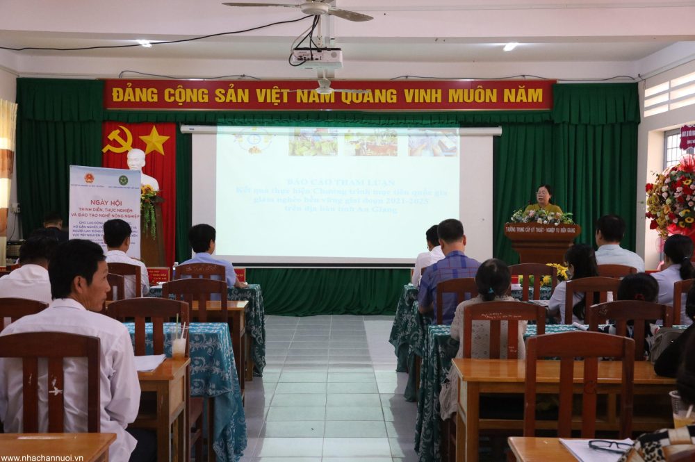 Buổi chiều, chương trình tiếp tục với hội thảo chuyên đề về giải pháp nâng cao chất lượng đào tạo nghề và tăng tỷ lệ lao động có việc làm sau đào tạo. Phát biểu khai mạc, PGS.TS Trần Hiệp – Trưởng Ban Khoa học và Công nghệ Học viện – nhấn mạnh rằng giảm nghèo bền vững chỉ thực sự hiệu quả khi đào tạo nghề gắn với nhu cầu thực tế của địa phương và thị trường lao động. An Giang có cơ cấu sản xuất nông nghiệp đa dạng, nhiều vùng nguyên liệu lớn nên các mô hình đào tạo cần được thiết kế theo sát nhu cầu của HTX và doanh nghiệp, tránh mở lớp dàn trải hoặc xa rời thực tiễn.