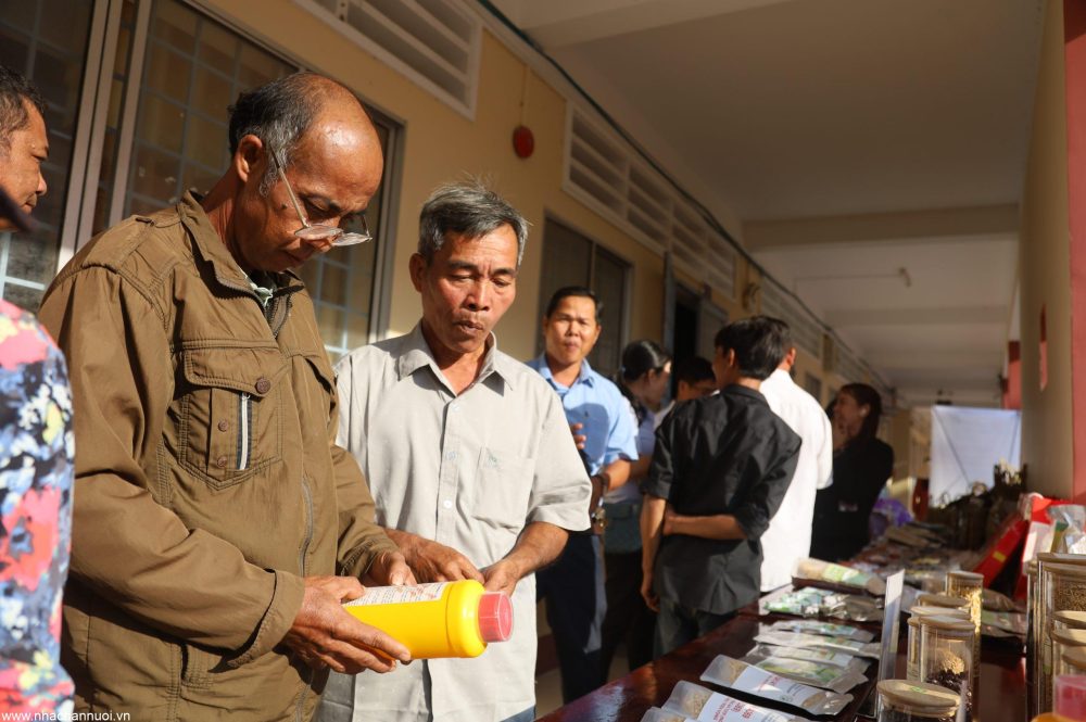 Trong buổi sáng, các mô hình trình diễn và thực nghiệm được bố trí theo từng nhóm nghề để người dân trực tiếp quan sát, thực hành và trao đổi với giảng viên, nghệ nhân và cán bộ kỹ thuật. Các nghề được giới thiệu trải rộng ở nhiều lĩnh vực như trồng lúa hữu cơ; trồng và sơ chế nấm ăn – nấm dược liệu; kỹ thuật chế biến thủy sản; thủ công mỹ nghệ; quản lý và sử dụng thuốc thú y, thuốc thủy sản; và quản lý môi trường nông nghiệp. Không chỉ dừng ở việc hướng dẫn thao tác, đội ngũ giảng viên tại mỗi điểm trình diễn còn giải thích yêu cầu kỹ thuật, chia sẻ kinh nghiệm sản xuất và hỗ trợ người dân xử lý các tình huống thực tế. Cách tổ chức này được các địa phương đánh giá là phù hợp với người lao động nông thôn, giúp họ dễ nắm bắt kỹ năng, hiểu rõ nghề phù hợp với điều kiện kinh tế – hộ gia đình, từ đó tăng khả năng áp dụng sau đào tạo.