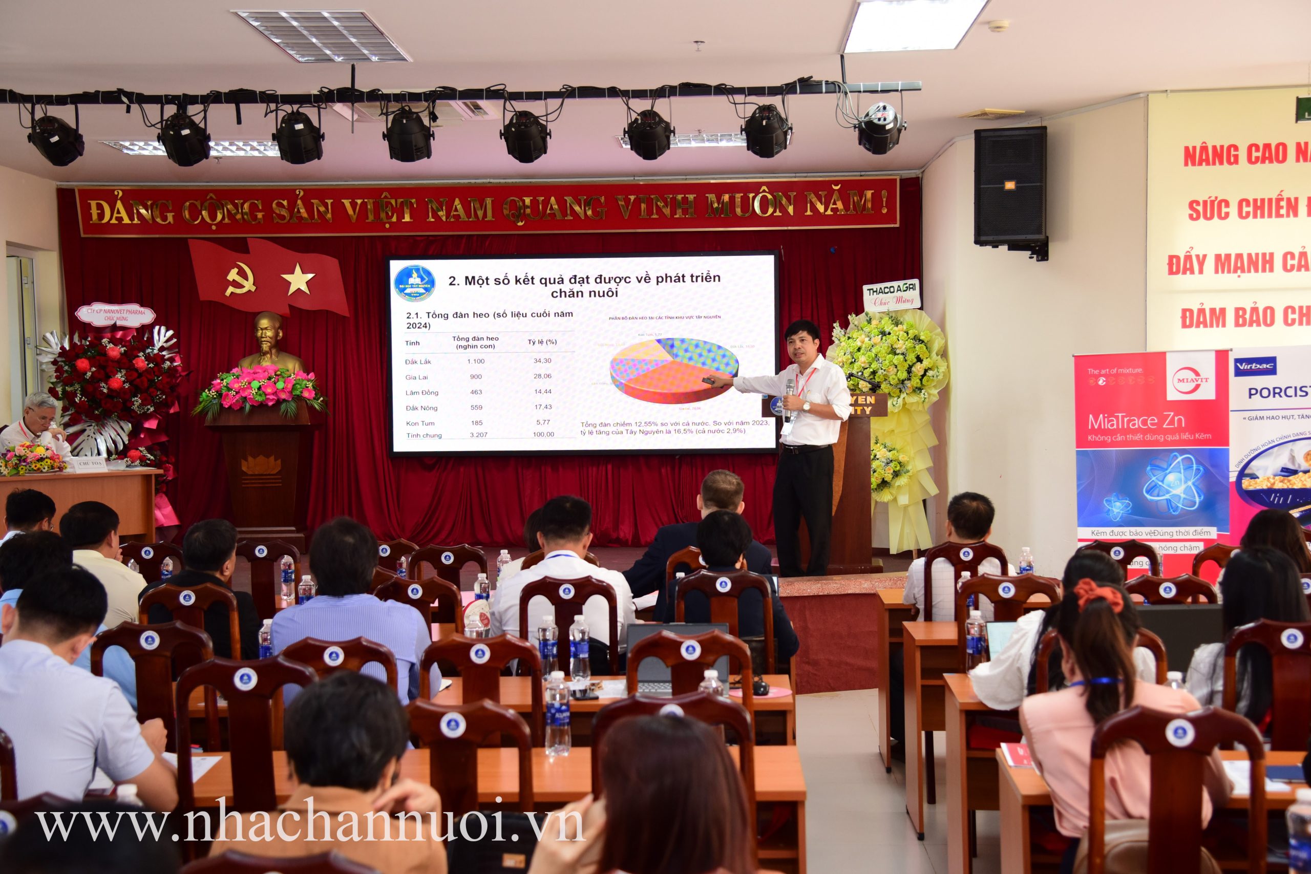 Phát biểu chào mừng hội thảo, theo PGS. TS Lê Đức Niêm, Phó Hiệu trưởng trường Đại học Tây Nguyên cho biết, Tây Nguyên – với địa hình, khí hậu và quỹ đất thuận lợi – là vùng đất đầy tiềm năng để phát triển ngành chăn nuôi. Trong nhiều năm qua, chăn nuôi đã đóng vai trò quan trọng trong việc kinh tế nông thôn, tạo công ăn việc làm, cải thiện đời sống của hàng ngàn hộ dân, đặc biệt là bà con đồng bào dân tộc thiểu số.