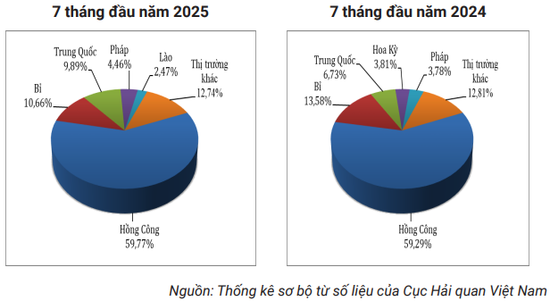 Tiếp theo xuất khẩu thịt và các sản phẩm thịt tăng trưởng cả về lượng và trị giá trong 7 tháng đầu năm 2025 so với cùng kỳ năm 2024 tới một số thị trường như: Trung Quốc, Canada, Singapore, Hàn Quốc, Nhật Bản, Hà Lan, Liban… Tuy nhiên, xuất khẩu giảm tới các thị trường như: Bỉ, Hoa Kỳ, Malaysia, Campuchia…