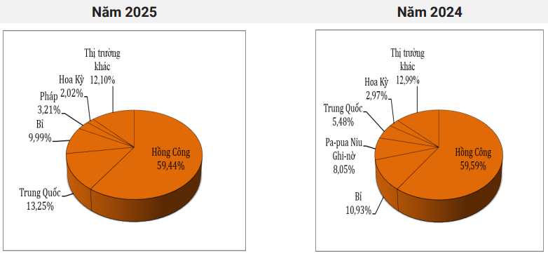 Trong năm 2025, Việt Nam xuất khẩu thịt và các sản phẩm thịt sang 36 thị trường. Trong đó, Hồng Kông vẫn là thị trường xuất khẩu thịt và các sản phẩm thịt lớn nhất của Việt Nam, chiếm 43,27% về lượng và chiếm 59,44% về trị giá trong tổng xuất khẩu thịt và các sản phẩm thịt của cả nước, với lượng đạt 9,6 nghìn tấn, trị giá 69,23 triệu USD, giảm 21,4% về lượng và giảm 0,7% về trị giá so với năm 2024. Sản phẩm thịt và các sản phẩm thịt của Việt Nam được xuất khẩu sang thị trường Hồng Kông chủ yếu vẫn là thịt lợn sữa nguyên con đông lạnh và thịt lợn nguyên con đông lạnh.