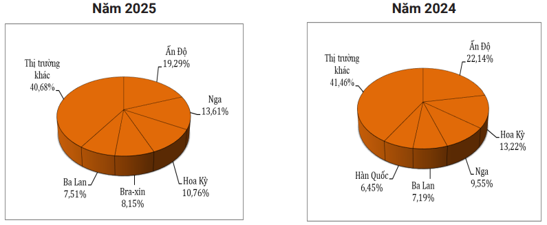 Năm 2025, Ấn Độ vẫn là thị trường cung cấp thịt và các sản phẩm từ thịt lớn nhất cho Việt Nam, chiếm 19,29% trong tổng lượng thịt và các sản phẩm từ thịt nhập khẩu của cả nước, đạt 188,7 nghìn tấn, trị giá 681,32 triệu USD, giảm 2,8% về lượng, nhưng tăng 5,6% về trị giá so với năm 2024.