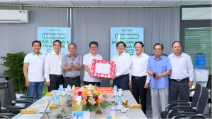 Bí thư Tỉnh ủy Hồ Quốc Dũng tặng quà cho tập thể cán bộ, nhân viên Trang trại Bò sữa NutiMilk của Công ty Cổ phần Thực phẩm Dinh dưỡng Nutifood
