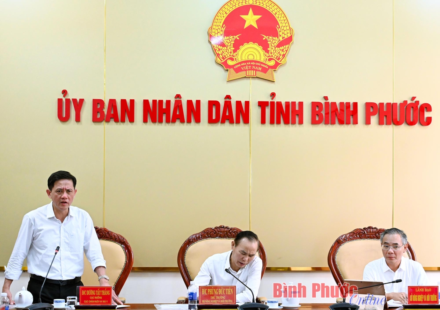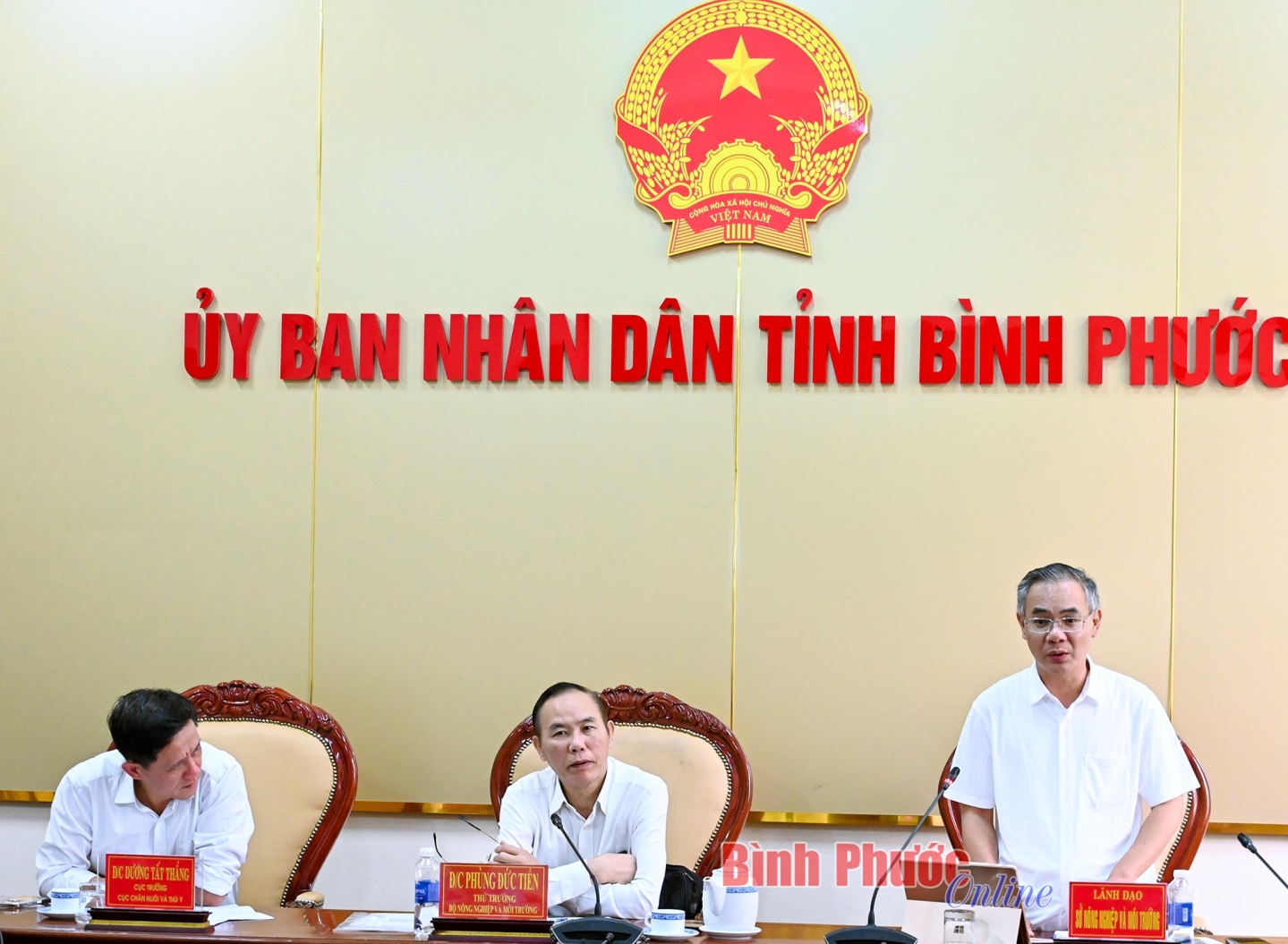 Giám đốc Sở Nông nghiệp và Môi trường tỉnh Bình Phước Phạm Thụy Luân phát biểu tại buổi làm việc