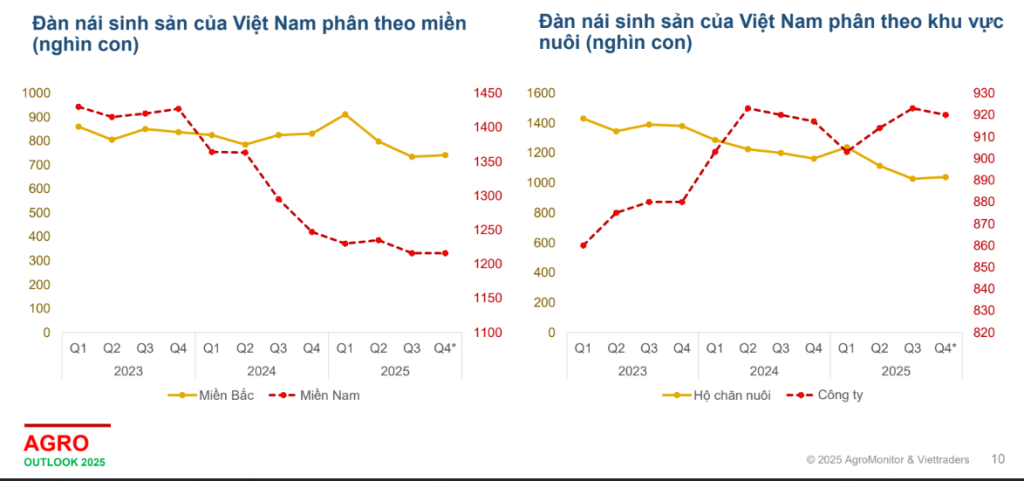 Diễn biến phức tạp của ASF trong quý II và Quý III/2025 đã xóa tan mọi thành tích tăng nái trước đó của miền Bắc, đồng thời kéo giảm đàn nái của Việt Nam về mức thấp nhất từ năm 2021, chỉ cao hơn đáng kể so với năm 2020, ở mức hơn 2 triệu nái.