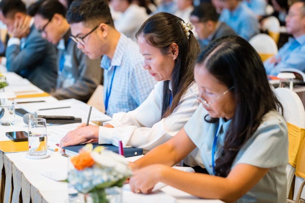 Các đại biểu tham dự hội thảo chăm chú lắng nghe và ghi chép các thông tin do diễn giả trình bày