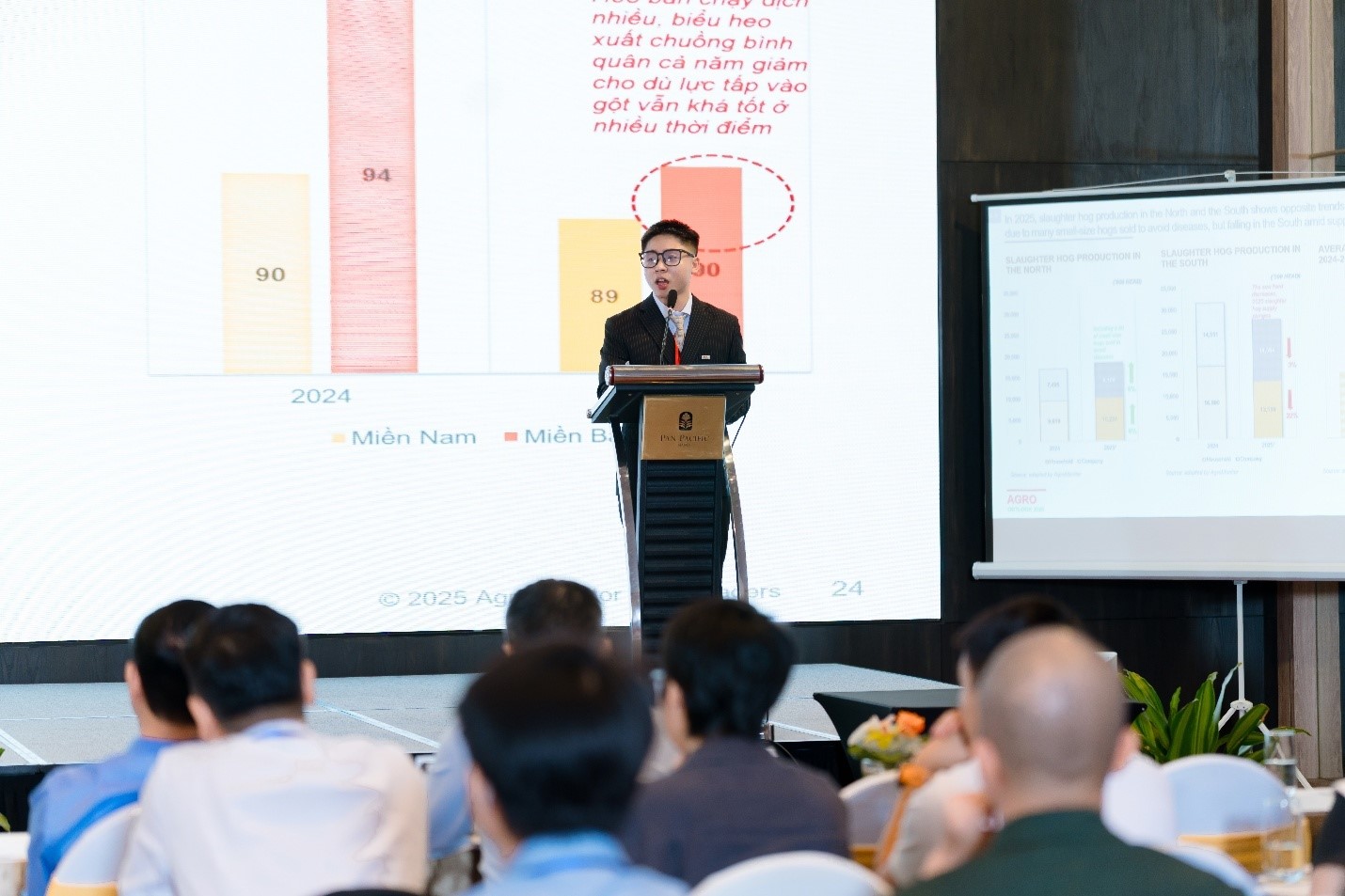 Ông Lý Trần Tuấn Anh, Công ty AgroMonitor với bài trình bày chủ đề “Cung – Cầu thị trường heo 2025 và dự phóng một số kịch bản 2026”.