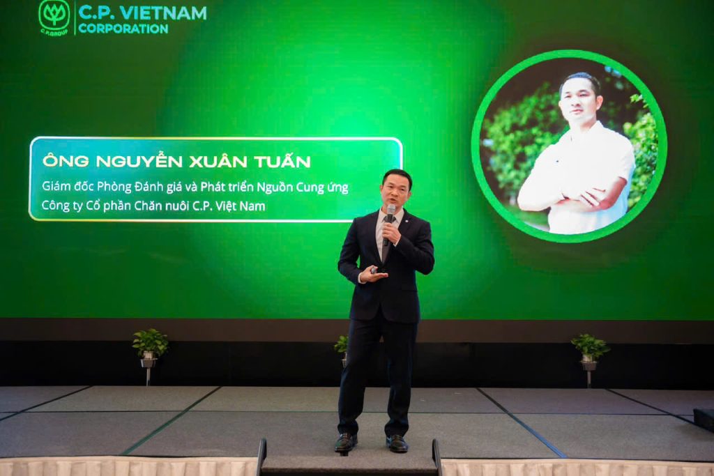 Ông Nguyễn Xuân Tuấn, Giám đốc Phòng đánh giá và Phát triển nguồn Cung ứng Công ty Cổ phần Chăn nuôi C.P Việt Nam phát biểu tại sự kiện