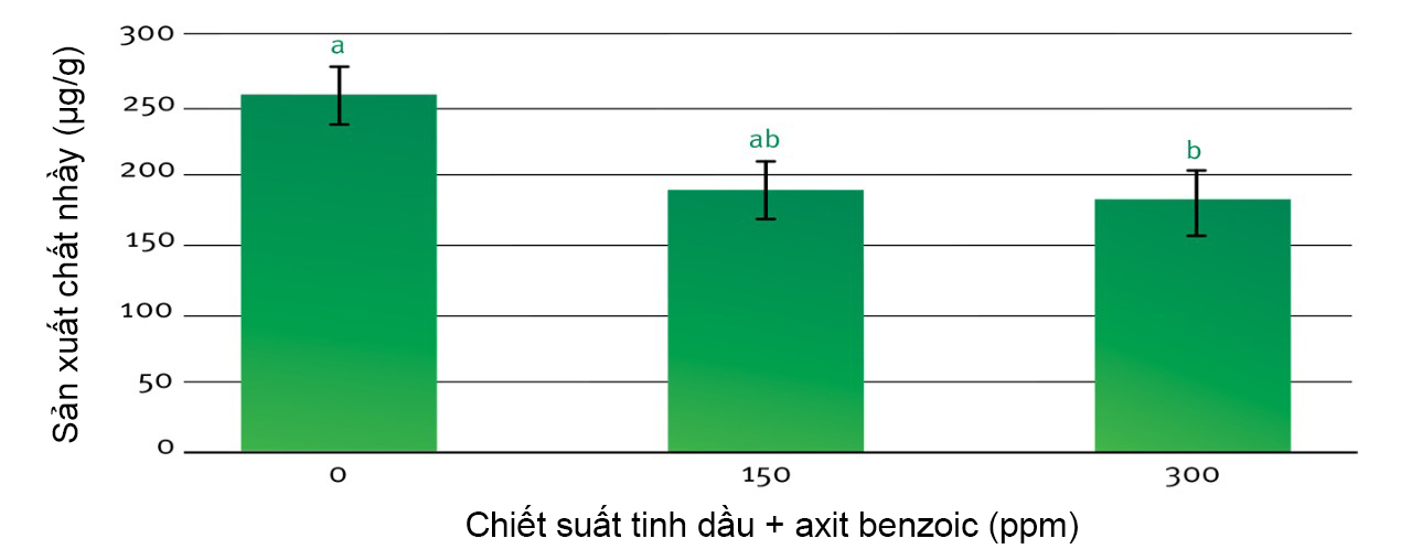 Một loại phytobiotics, hỗn hợp EO là hỗn hợp các hợp chất phytochemical có đặc tính kháng khuẩn chọn lọc, như carvacrol, thymol, cinnamaldehyd, một số loại khác. Một số hỗn hợp EO cụ thể đã cho thấy kết quả đầy hứa hẹn đối với việc giảm sự xâm nhập, tăng sinh của Clostridium perfringens và kiểm soát nhiễm cầu trùng, do đó giúp giảm viêm ruột hoại tử. Ngoài ra, sự kết hợp của EO với axit benzoic đã cho thấy giảm sản xuất chất nhầy trong ruột non đối với gà thịt.