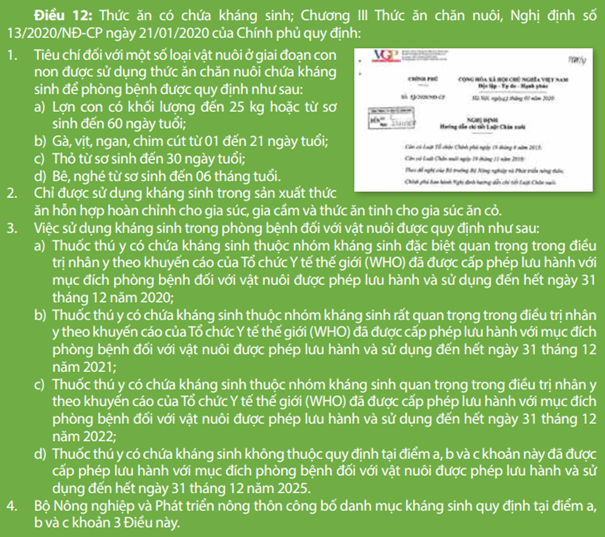 siết chặt: năm 2018 cấm dùng kháng sinh kích thích sinh trưởng, nay tiến tới loại bỏ hoàn toàn kháng sinh phòng bệnh.