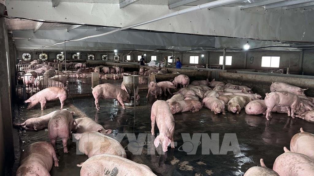 Đàn lợn tại trang trại của ông Bùi Đức Biên ở xã Phùng Nguyên, tỉnh Phú Thọ, hiện vẫn an toàn trước dịch tả lợn châu Phi. Ảnh: Nguyễn Văn Cảnh-TTXVN