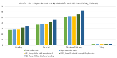Hình 3. Các kịch bản giá vốn chăn nuôi gia cầm dựa trên tình hình chiến tranh tại Trung Đông