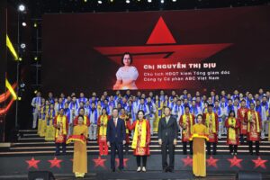 Bà Nguyễn Thị Dịu – Chủ tịch HĐQT kiêm Tổng giám đốc Công ty Cổ phần ABC Việt Nam nhận giải thưởng Sao Đỏ