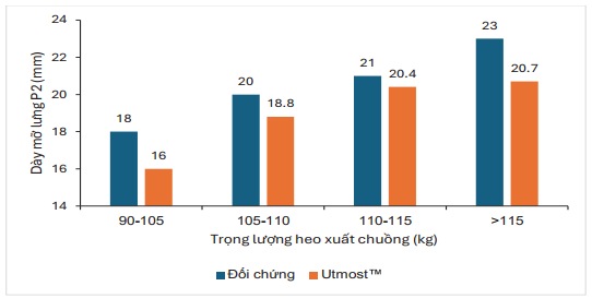 Hình 3. Tác động của công nghệ SmartMeta đến độ dày mỡ lưng P2 lúc xuất chuồng