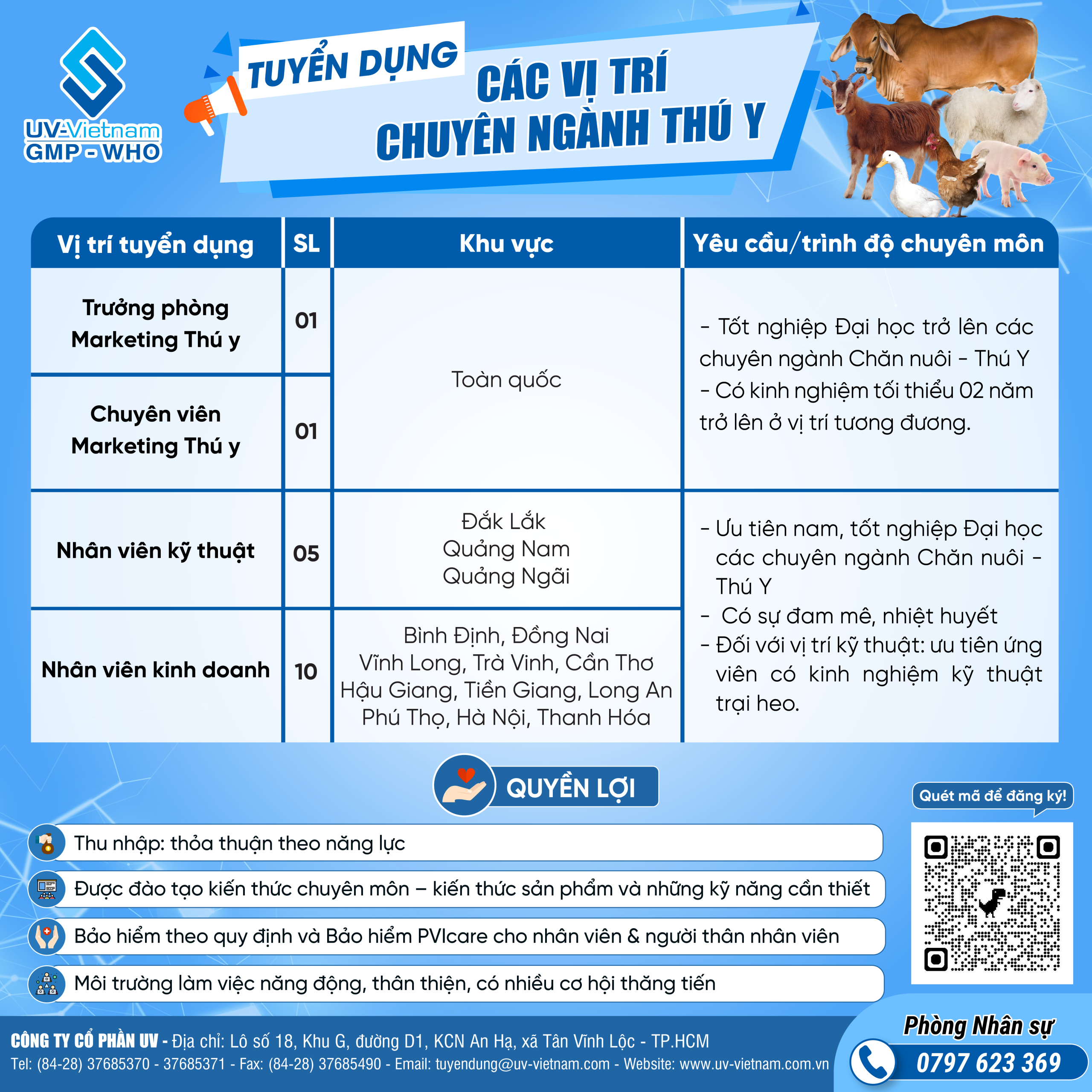 [Chăn Nuôi Việt Nam] – Nhằm đáp ứng nhu cầu phát triển và mở rộng thị trường, Công ty Cổ phần UV (UV Vietnam) tuyển dụng nhiều vị trí chuyên ngành Thú y trên cả nước.