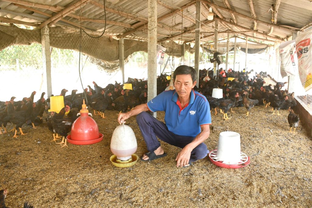 Ông Nguyễn Sơn chăn nuôi gà theo hướng an toàn. Ảnh: Quang Việt