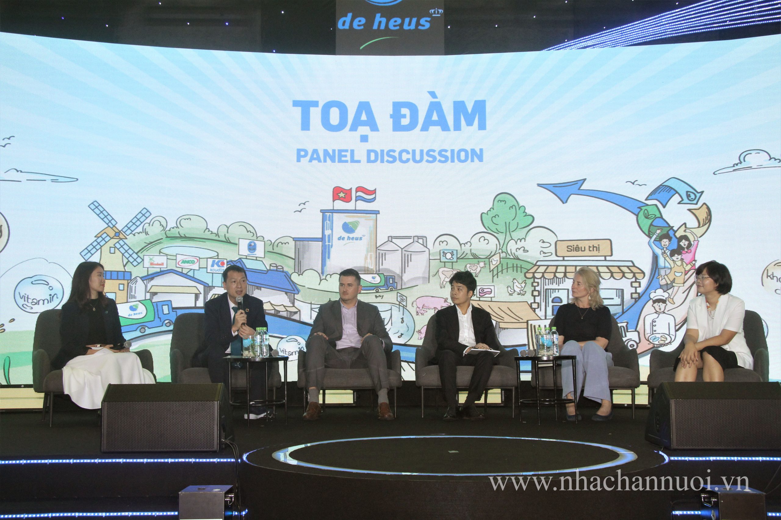 Tại phiên tọa đàm, đại diện De Heus và các khách mời là các đối tác, nhà cung cấp, doanh nghiệp tiêu biểu đã chia sẻ về phát triển bền vững và thu mua có trách nhiệm