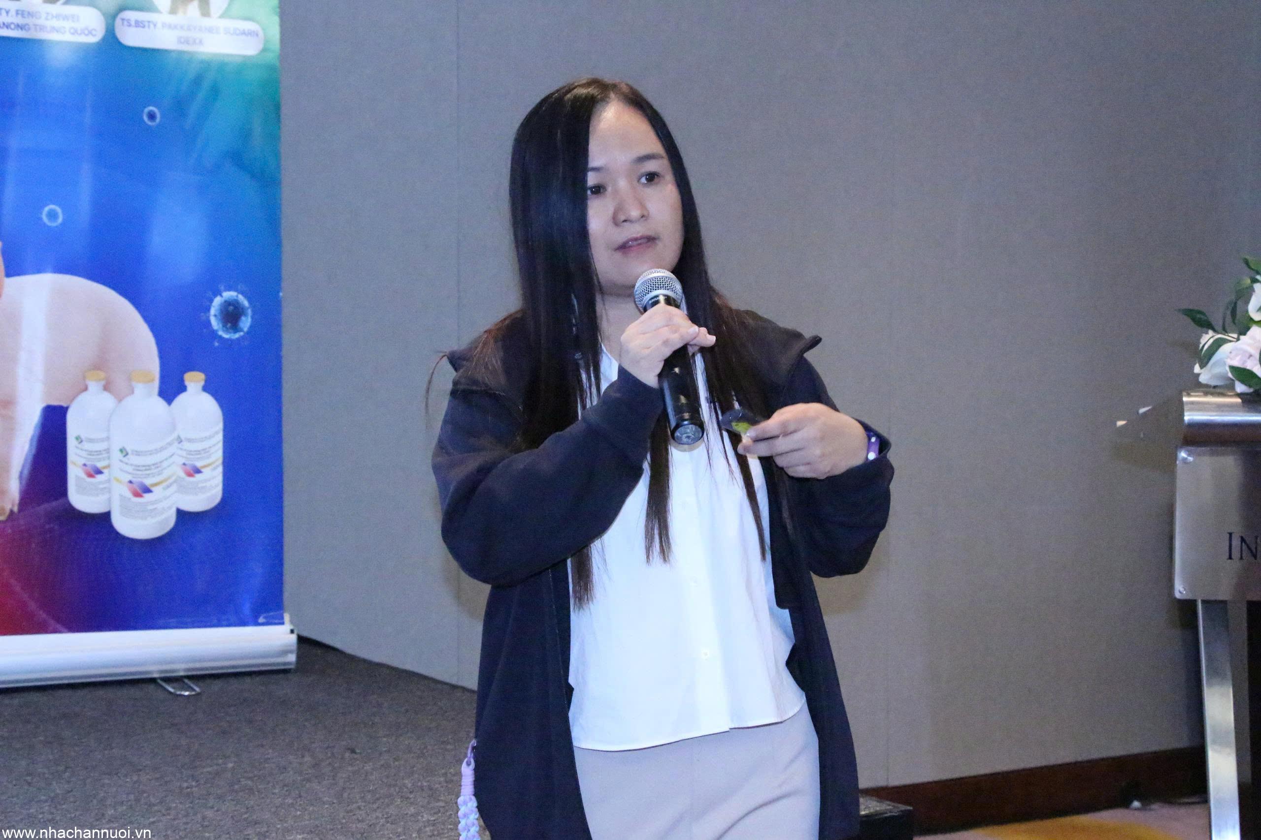 BSTY Pakkayanee Sudsarn – chuyên gia kinh doanh và kỹ thuật thị trường, IDEXX Thái Lan trình bày báo cáo với chủ đề “Tình hình dịch tễ hiện nay của ASF, PRRS và PED tại Thái lan: Chuyển hóa thách thức thành giải pháp chẩn đoán”.