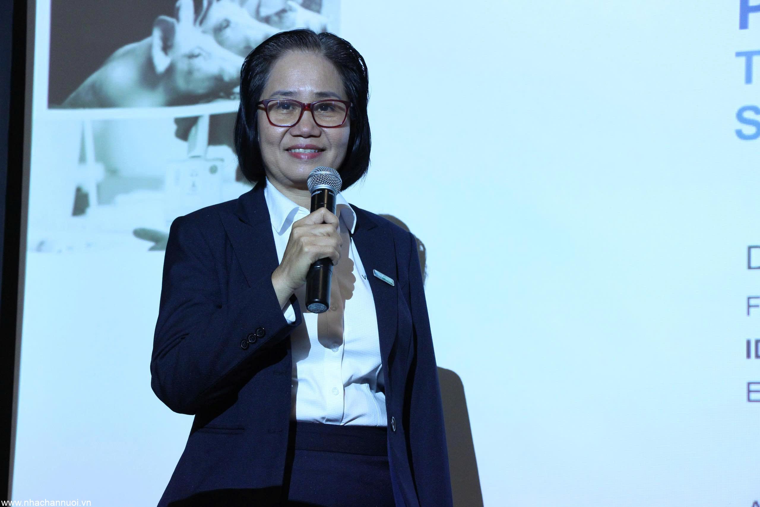 Bà Lê Thị Thu Hà – Giám đốc điều hành Công ty CP VETLATECH với bài trình bày “Thực trạng và cập nhật bệnh tái nổi và PRRSV”