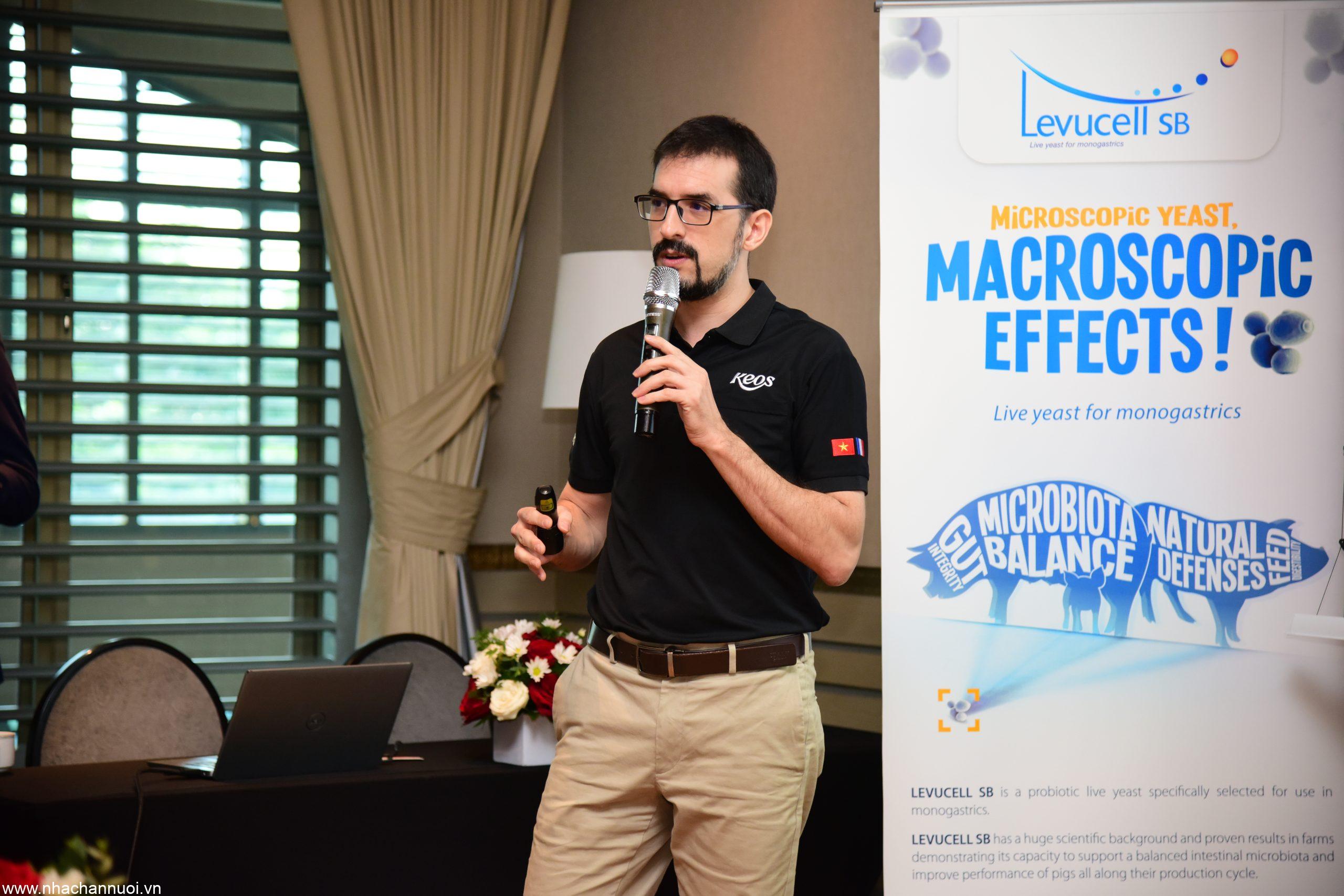 Ông Pierre Lebreton, Giám đốc toàn cầu ngành hàng cho lợn và gia cầm của Lallemand trong bài báo cáo “Levucell SB: Giải phóng tiềm năng năng suất của lợn nái năng suất cao” cho biết Levucell SB là men sống đậm đặc dòng Saccharomyces cerevisiae boulardii CNCM I-1079, được sản xuất với công nghệ vi bọc Titan (chịu nhiệt, axit). Giúp giảm số lượng vi sinh vật gây hại, cân bằng và ổn định hệ vi sinh vật có lợi trong đường ruột; tối ưu sức khỏe đường ruột, giúp lợn nái ít bị stress và cải thiện hiệu suất lứa đẻ.