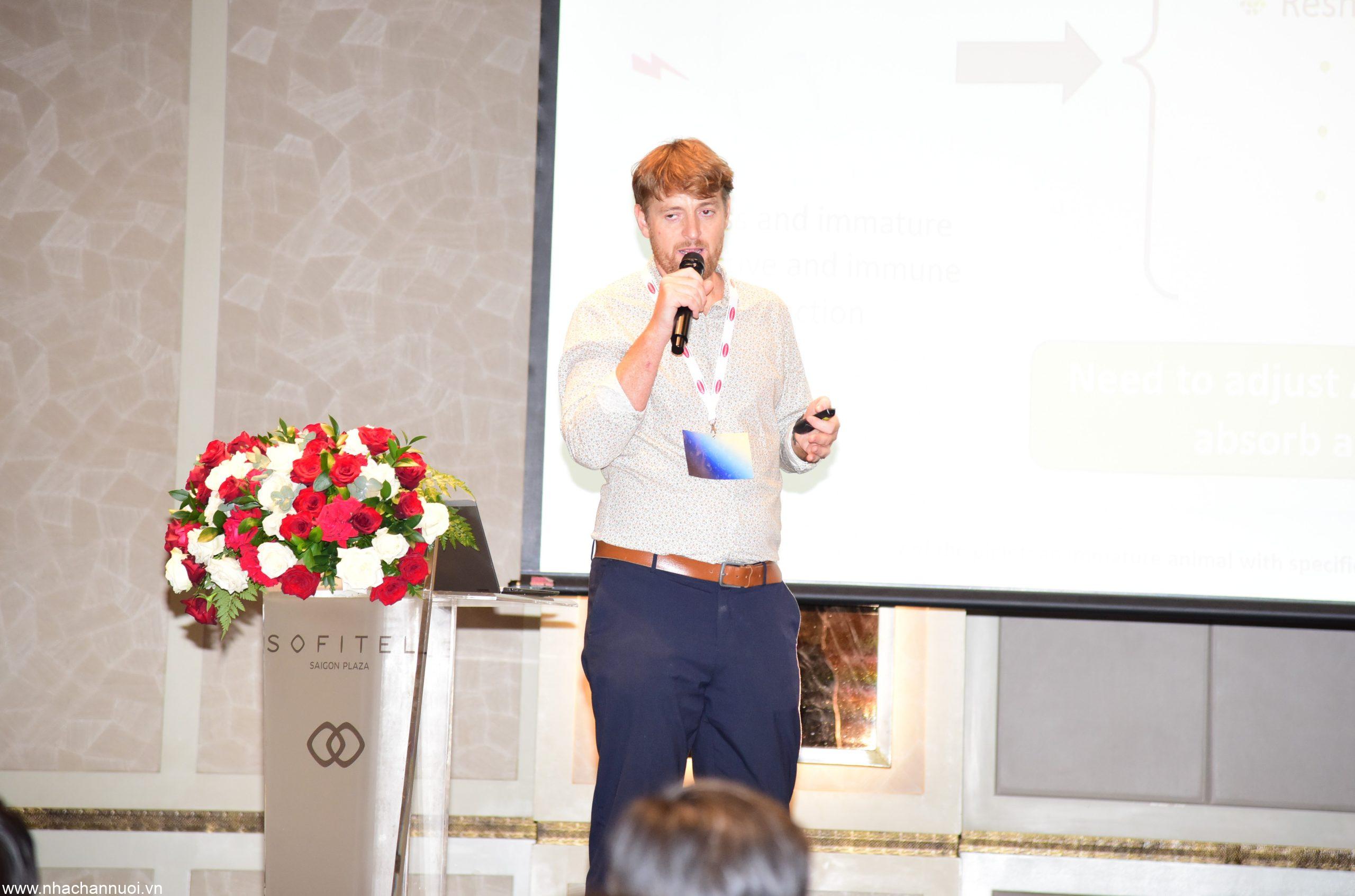 Phát biểu khai mạc, ông Yoann Perrault – Giám đốc Khu vực Đông Nam Á của Lallemand, nhấn mạnh cam kết khoa học của công ty: “Lallemand là công ty có hơn 100 năm chỉ nghiên cứu về vi sinh, hệ sinh thái của vi sinh và chứng minh ứng dụng của vi sinh vật trong đời sống, đặc biệt tập trung cho vật nuôi.”