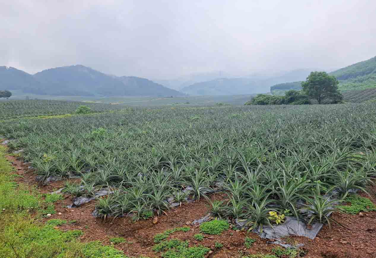 Hiện nay, cây trồng chủ đạo tại dự án này là dứa. Qua quan sát, cây dứa phát triển khá đồng đều, xanh tốt.