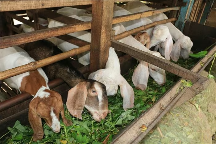 Mô hình nuôi dê thịt tại Đồng Tháp. Ảnh: Nhựt An/TTXVN