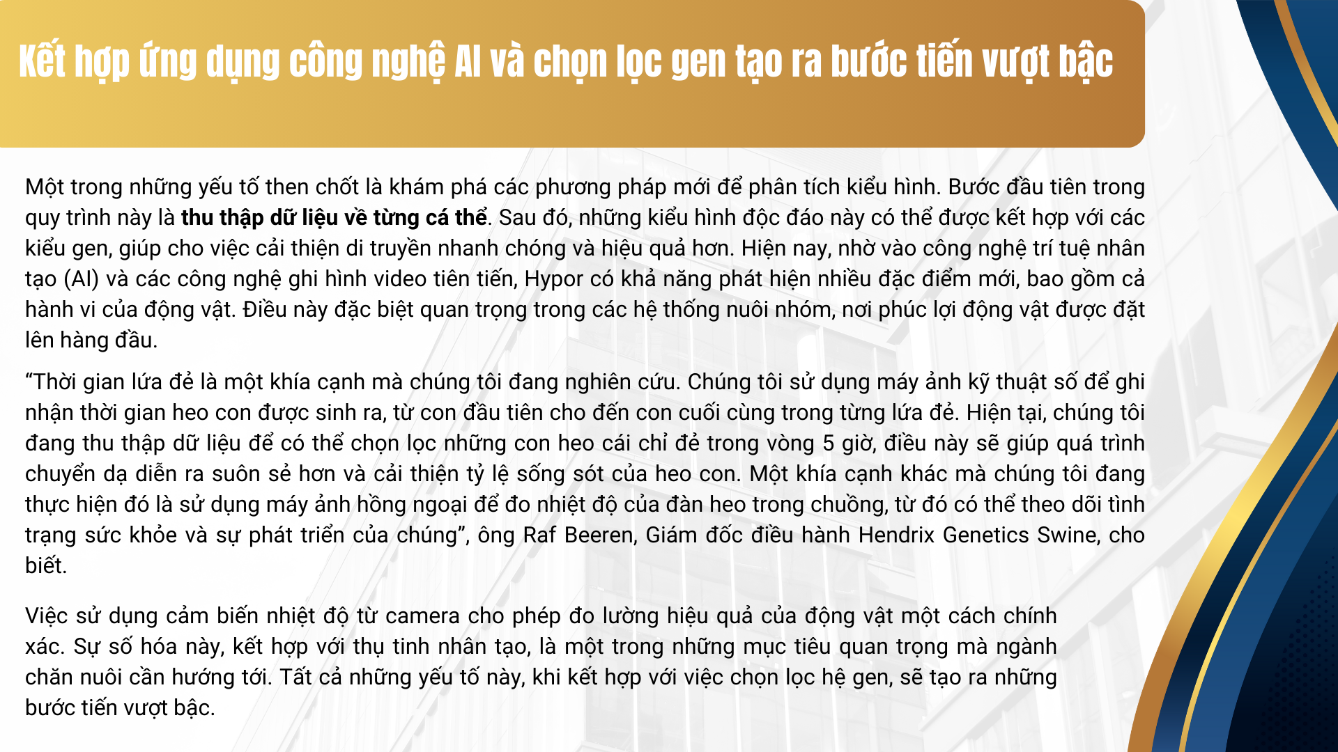 Giải pháp di truyền tiên tiến, hiệu quả cao cho ngành chăn nuôi heo Việt Nam