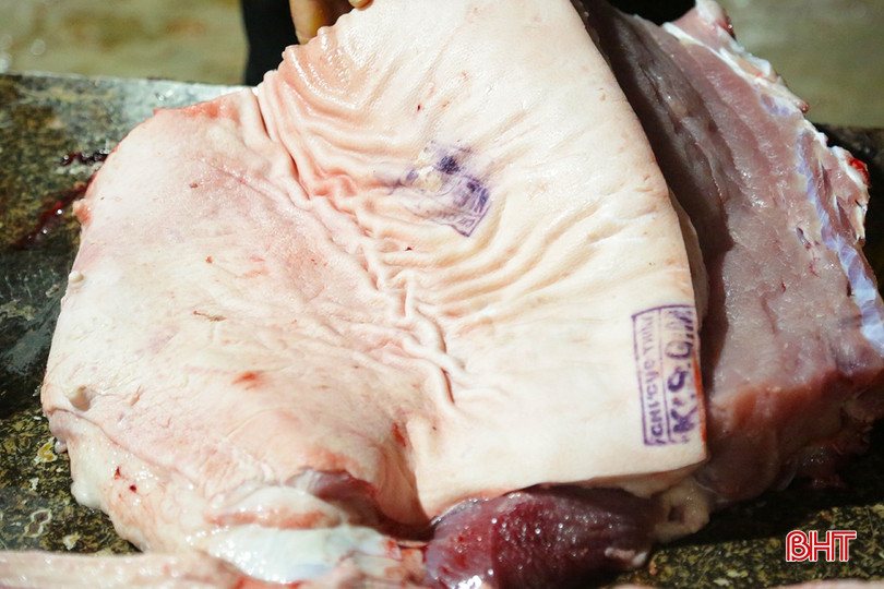 Thân thịt được đóng dấu kiểm soát giết mổ là một trong những dấu hiệu nhận biết lợn đã qua kiểm dịch. Ảnh: Báo Hà Tĩnh