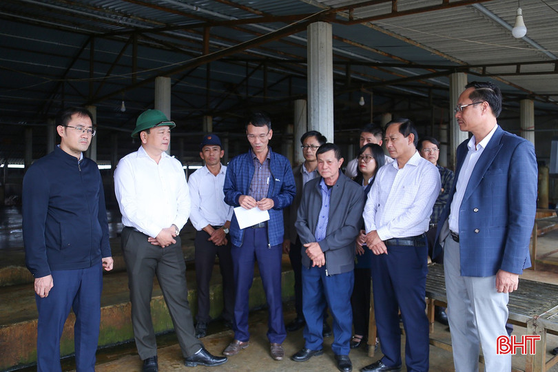 Phó Chủ tịch UBND tỉnh Hồ Huy Thành cùng đoàn công tác kiểm tra hoạt động giết mổ tại các cơ sở giết mổ tập trung. Ảnh: Báo Hà Tĩnh