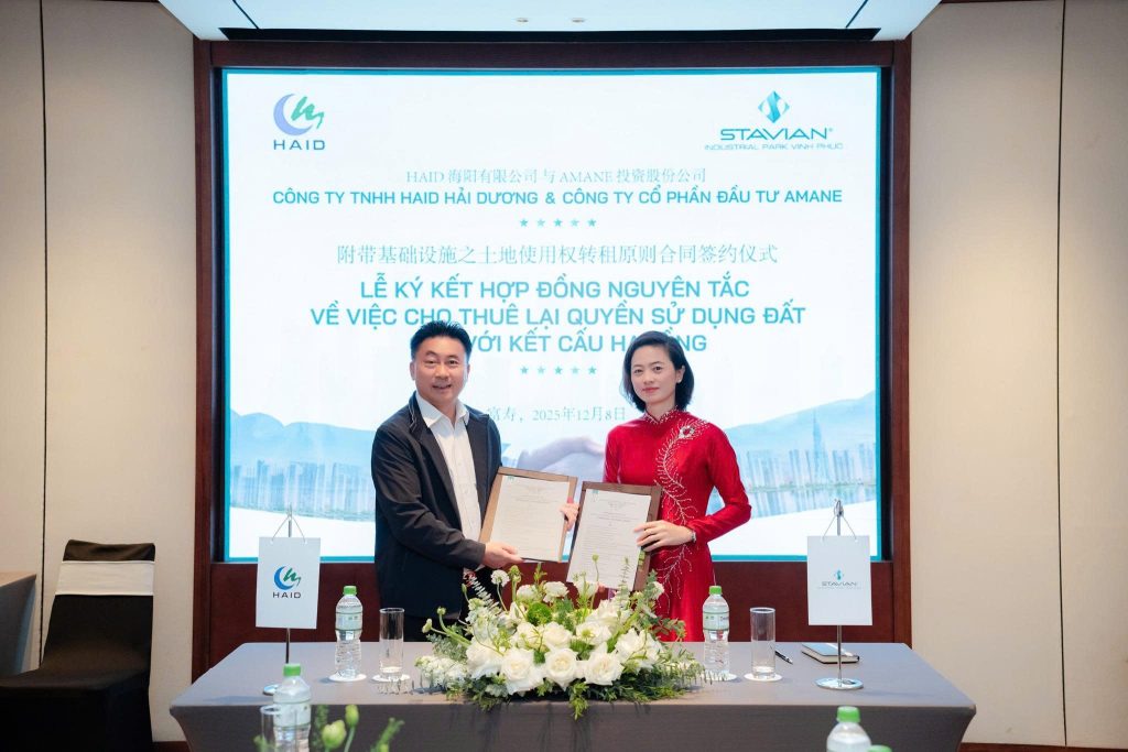 Tham dự lễ ký kết có ông Đường Minh, Tổng Giám đốc Khu vực Việt Nam của Haid, cùng đội ngũ lãnh đạo chủ chốt của Tập đoàn và đại diện lãnh đạo cấp cao Khu công nghiệp Liên Hòa. Sự kiện này đánh dấu cột mốc quan trọng trong chiến lược mở rộng và phát triển thị trường miền Bắc của Haid Group, đồng thời tạo thêm động lực mạnh mẽ cho chiến lược toàn cầu hóa của Tập đoàn.