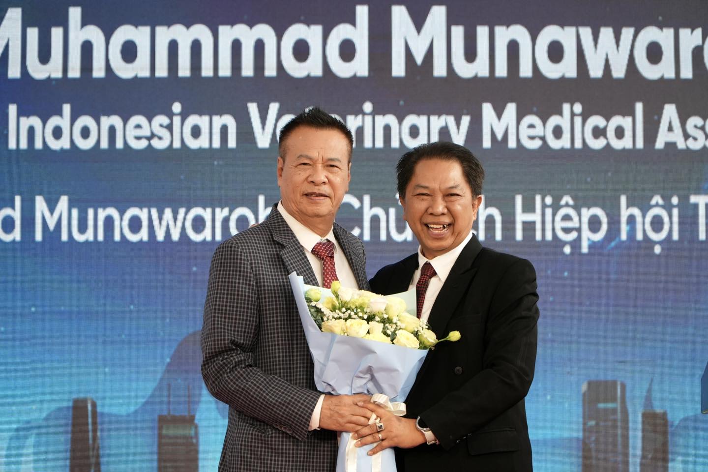 Ông Dr. Muhammad Munawaroh, Chủ tịch Hiệp hội Thú y Indonesia (bên phải) chúc mừng TS. Nguyễn Hữu Vũ