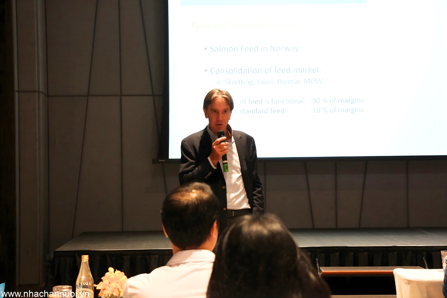 Theo ông, kinh nghiệm từ ngành nuôi cá hồi Na Uy cho thấy hiện nay, thức ăn chức năng đã chiếm tới 50% sản lượng, nhưng lại đóng góp tới 90% tổng lợi nhuận. Điều này phản ánh rõ xu hướng phát triển các loại thức ăn có bổ sung hợp chất hoạt tính sinh học, không chỉ có ý nghĩa về mặt dinh dưỡng mà còn giữ vai trò kinh tế quan trọng trong sản xuất hiện đại.