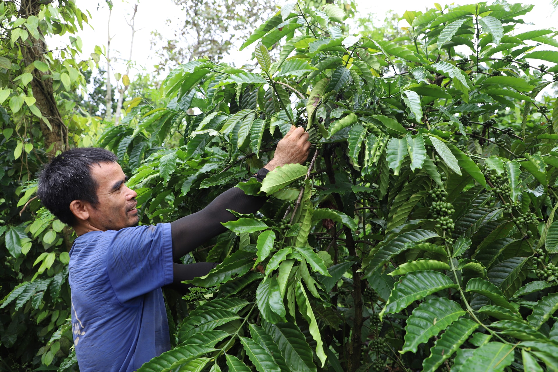 Các hộ đồng bào DTTS tận dụng nguồn thu và phân bón từ mô hình chăn nuôi dê sinh sản để tái đầu tư cải tạo vườn cà phê, nâng cao năng suất cây trồng