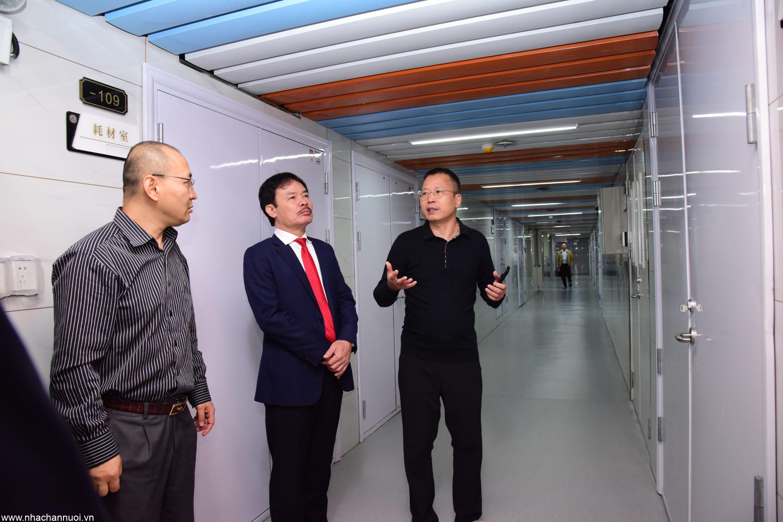 Đoàn đã tới thăm khu nhà cao tầng chăn nuôi lợn tại tỉnh Quảng Châu