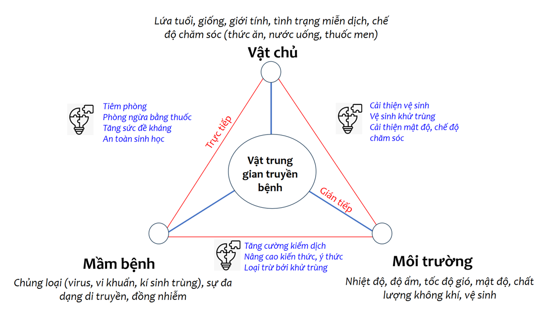 Hình 2. Tam giác vòng truyền lây bệnh truyền nhiễm lấy vai trò yếu tố trung gian truyền lây làm trung tâm và biện pháp ngăn ngừa