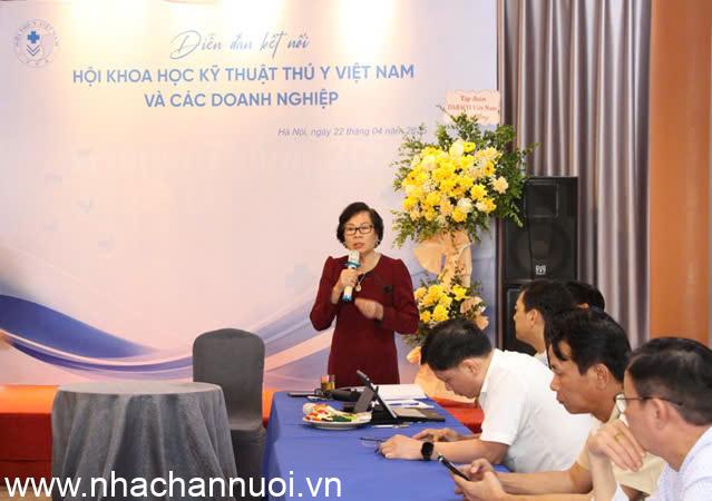 Phát biểu khai mạc diễn đàn, TS. Nguyên Thị Hương, Chủ tịch Hội Thú y, nhân mạnh vai trò then chốt của sự kiện trong việc thúc đây hợp tác, chia sẻ tâm nhìn và xây dựng câu nôi bên vững giữa Hội và các doanh nghiệp.