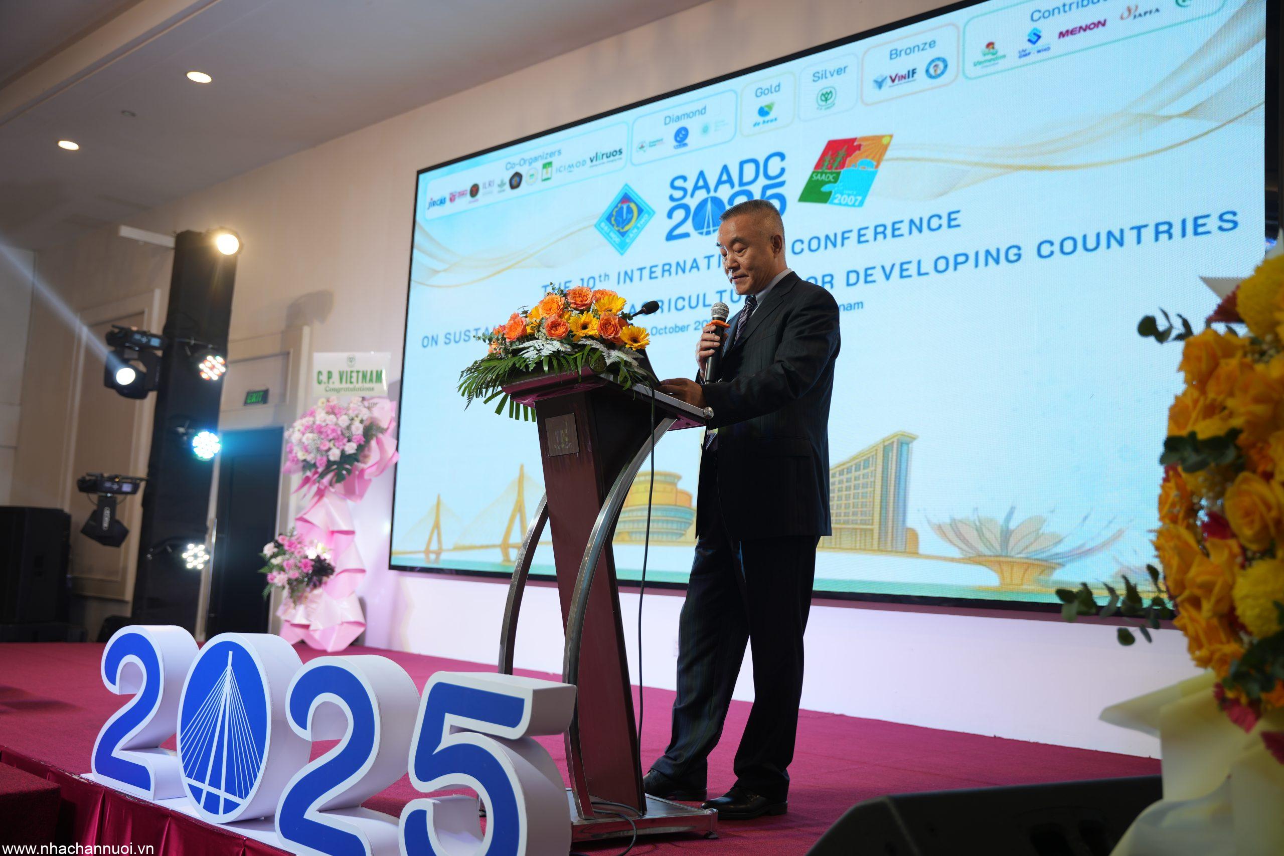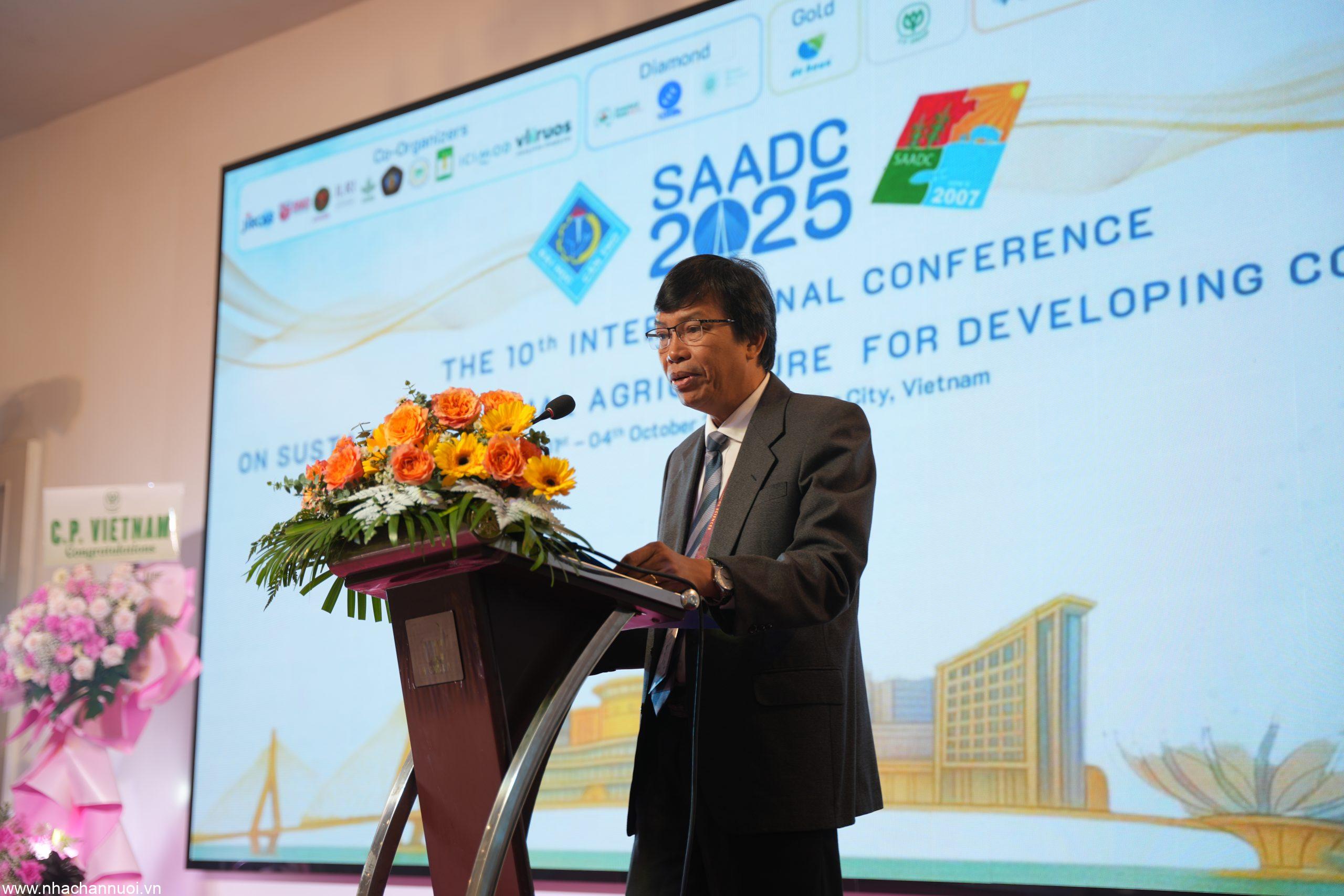Phát biểu tại buổi lễ, GS.TS. Trần Ngọc Hải, Phó Hiệu trưởng ĐHCT, Phó Trưởng Ban Tổ chức SAADC 2025, nhấn mạnh rằng ngành chăn nuôi hiện nay không chỉ đóng vai trò trụ cột trong việc bảo đảm an ninh lương thực và phát triển kinh tế, mà còn đối mặt với nhiều thách thức lớn từ biến đổi khí hậu và áp lực môi trường. Ông cho rằng SAADC 2025 chính là cơ hội để cộng đồng khoa học quốc tế cùng nhau chia sẻ kinh nghiệm, đề xuất giải pháp và chung tay xây dựng một hệ thống chăn nuôi tuần hoàn, bền vững và thân thiện với môi trường.