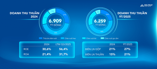 Biên lợi nhuận sau thuế 15,1%, ROE 30,6% và ROA 21,4%. Luỹ kế 9 tháng đầu năm 2025, lợi nhuận sau thuế đạt 1.295 tỷ đồng với ROE 56,4% và ROA 31,7%