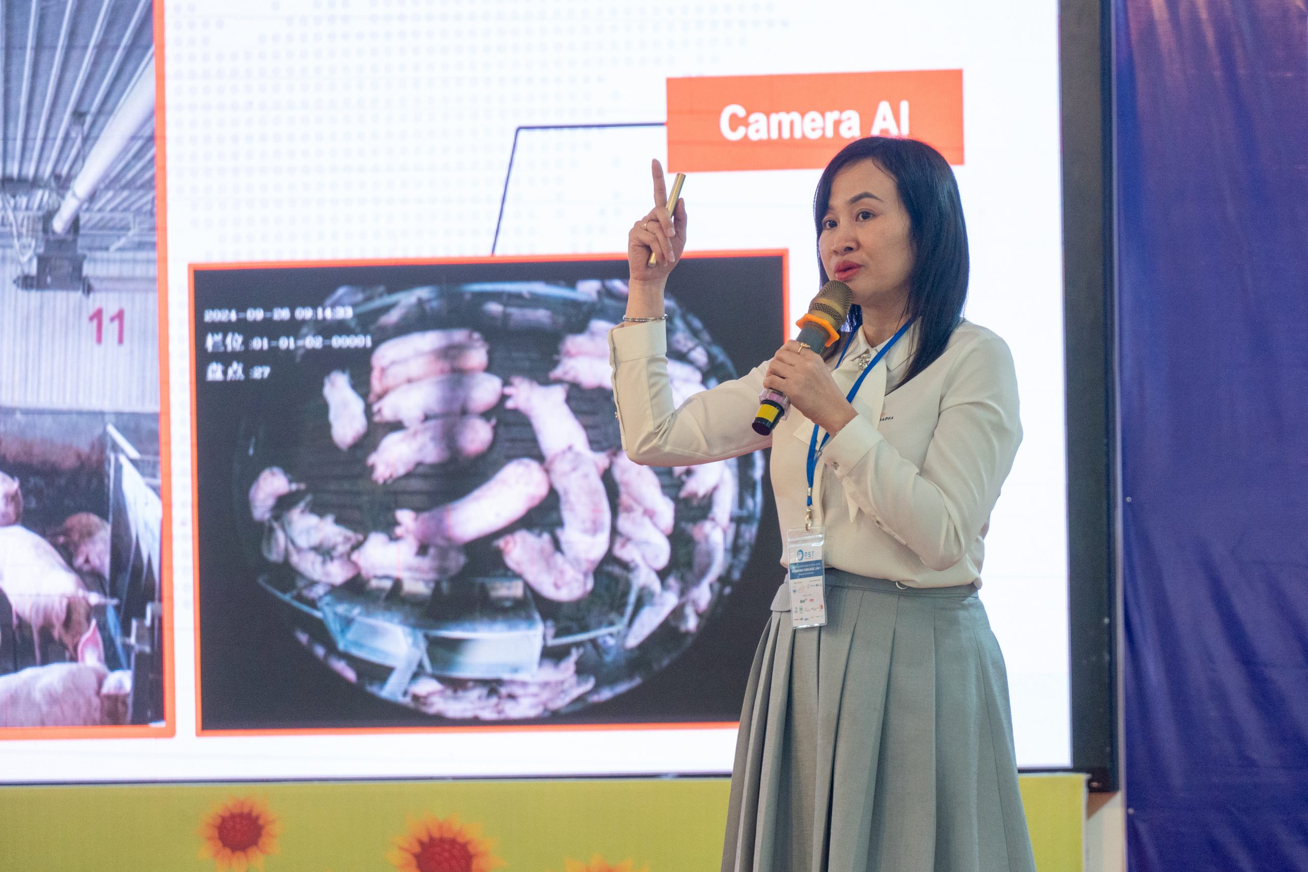 Bà Nguyễn Thị Phương Thảo, Giám đốc phát triển kinh doanh Công ty Japfa Comfeed Việt Nam giới thiệu sự tổng hợp của sản phẩm Bộ thấp đạm Corefeed và Camera AI
