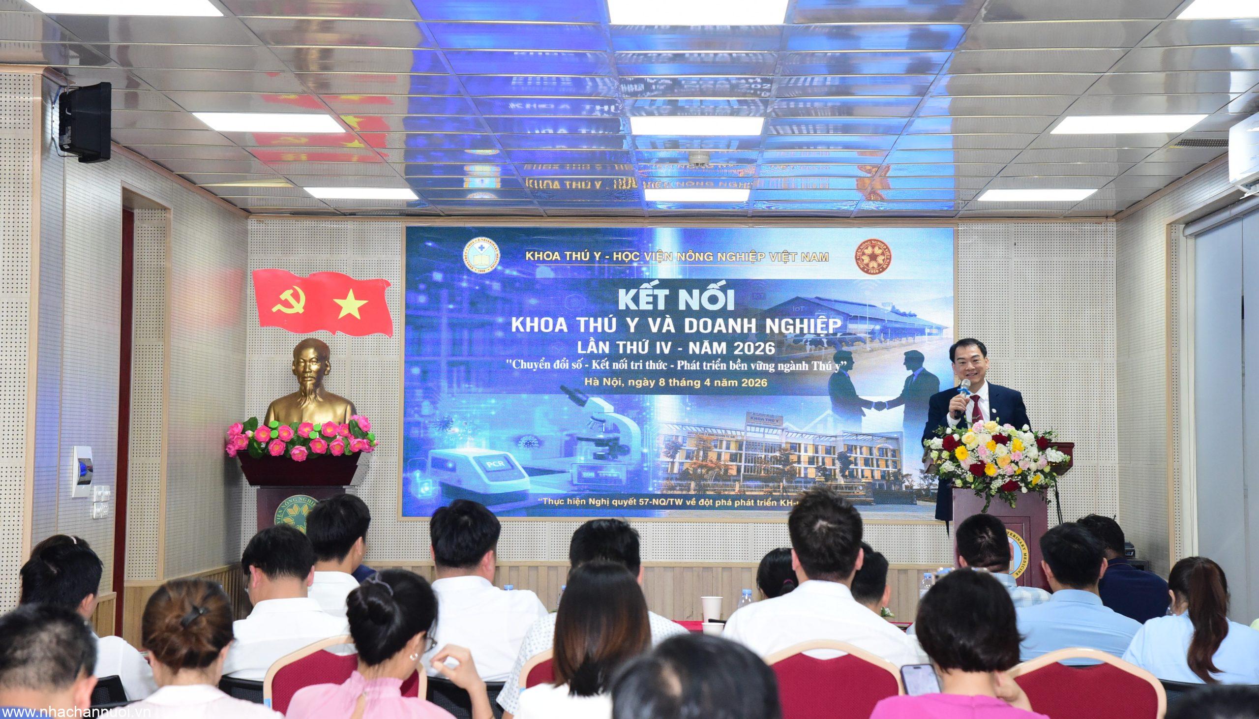 [Chăn nuôi Việt Nam] – Chiều ngày 8/4/2026, Khoa Thú y (Học viện Nông nghiệp Việt Nam – VNUA) đã tổ chức thành công chương trình “Kết nối Khoa Thú y và Doanh nghiệp lần thứ IV với chủ đề Chuyển đổi số – Kết nối tri thức – Phát triển bền vững ngành Thú y”.