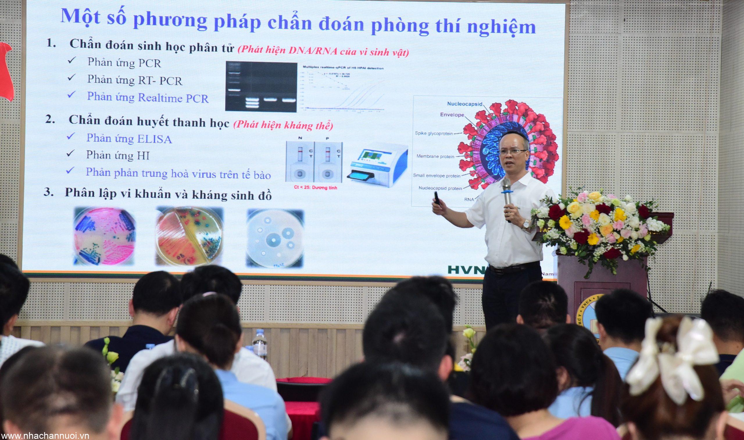 PGS.TS. Lê Văn Phan, Khoa Thú y, Học viện Nông nghiệp Việt Nam trình bày chủ đề: “Ứng dụng chẩn đoán phòng thí nghiệm trong quản lý dịch bệnh” tại sự kiện, nhận được sự quan tâm của các đại biểu tham dự
