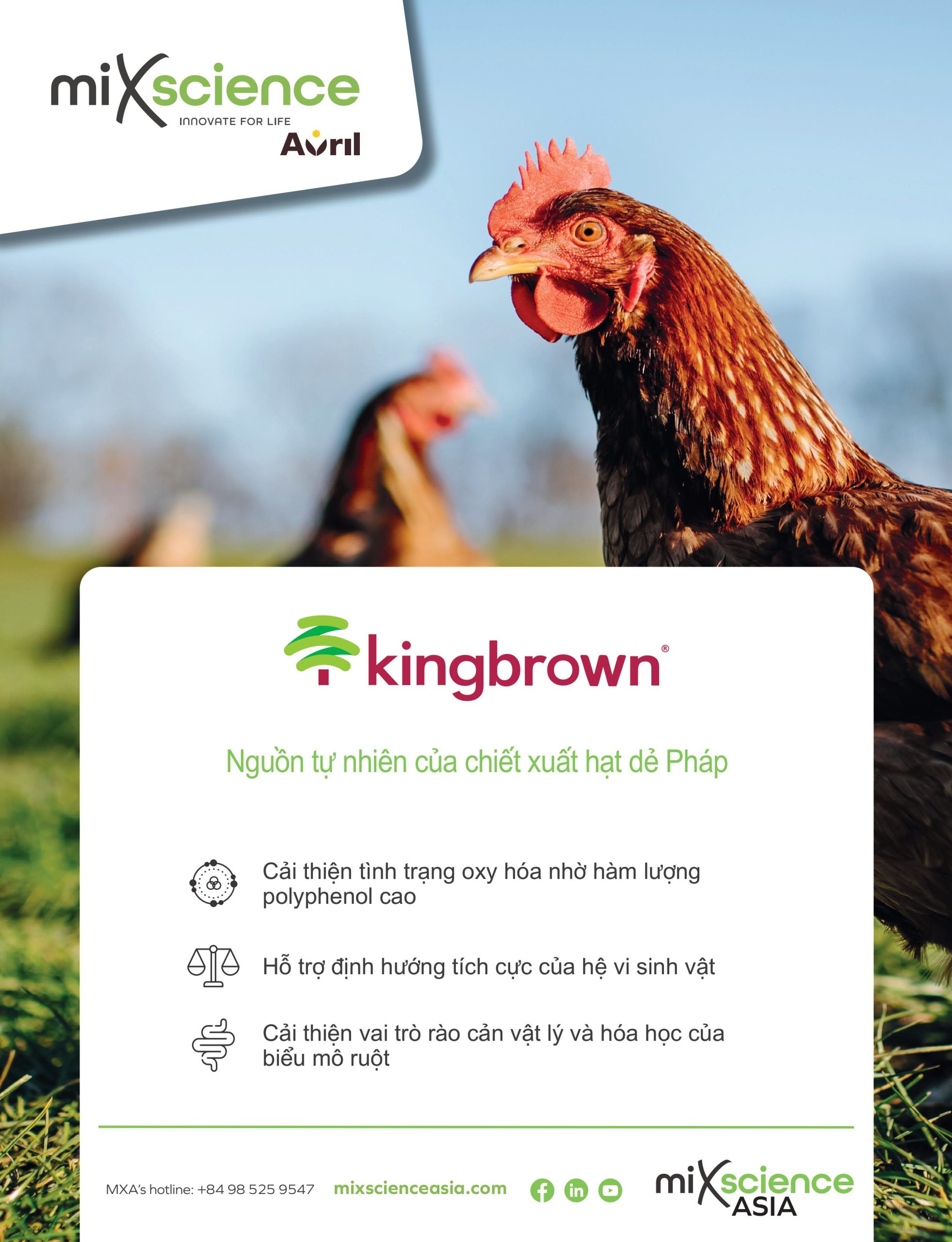 [Chăn nuôi Việt Nam] – Sản phẩm Kingbrown của Mixscience (Avril Group – Pháp) là phụ gia dinh dưỡng thế hệ mới, được chiết xuất tự nhiên từ hạt dẻ Pháp, giàu polyphenol – mang lại nhiều lợi ích vượt trội cho sức khỏe đường ruột và hiệu suất chăn nuôi.