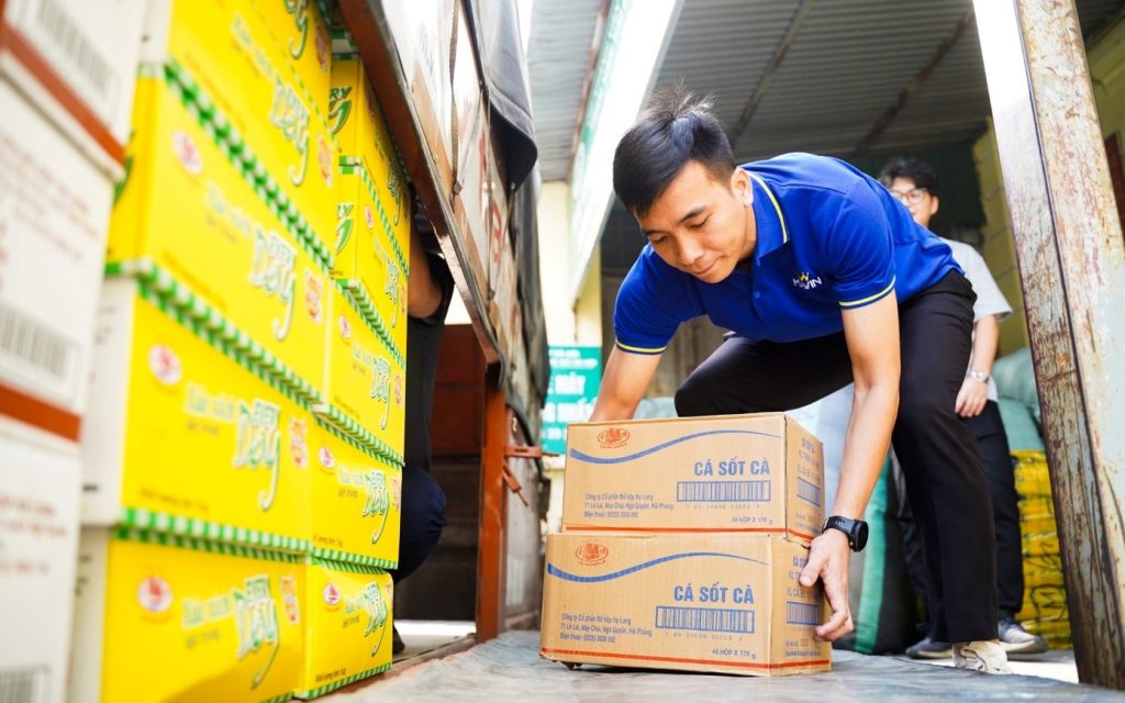 Cán bộ trẻ Mavin và Hạ Long Canfoco cùng chuyển hàng đến ga tàu đưa vào Gia Lai tiếp sức bà con vùng lũ