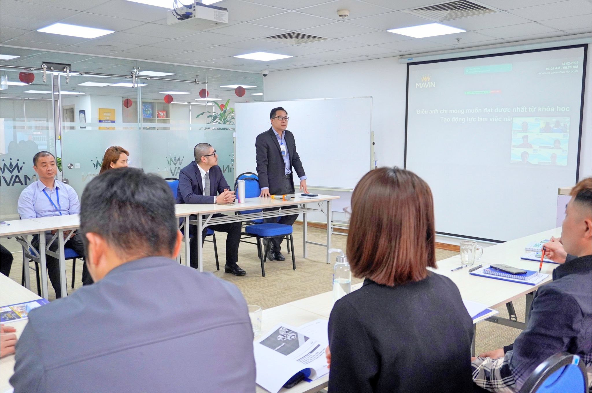 Khóa học không chỉ mang lại kiến thức mà còn là cơ hội để các cán bộ quản lý Mavin cùng nhau chia sẻ, trao đổi kinh nghiệm thực tiễn trong việc tạo động lực cho đội ngũ. Các hoạt động nhóm, thảo luận tình huống thực tế giúp học viên có cái nhìn đa chiều và có thể áp dụng ngay vào công việc quản lý nhân sự hàng ngày.