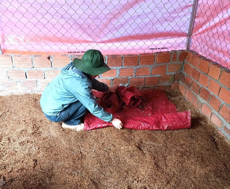 Theo đó, gia đình ông A Biang được hỗ trợ sửa lại chuồng, sử dụng đệm lót mùn cưa, vỏ trấu, cám gạo kết hợp với lớp men vi sinh vật có ích trải trên nền chuồng.